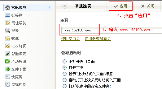 提示:若仍无法设置主页,请点击查看“主页修复”;或“把是要上网下载到桌面” 遨游浏览器